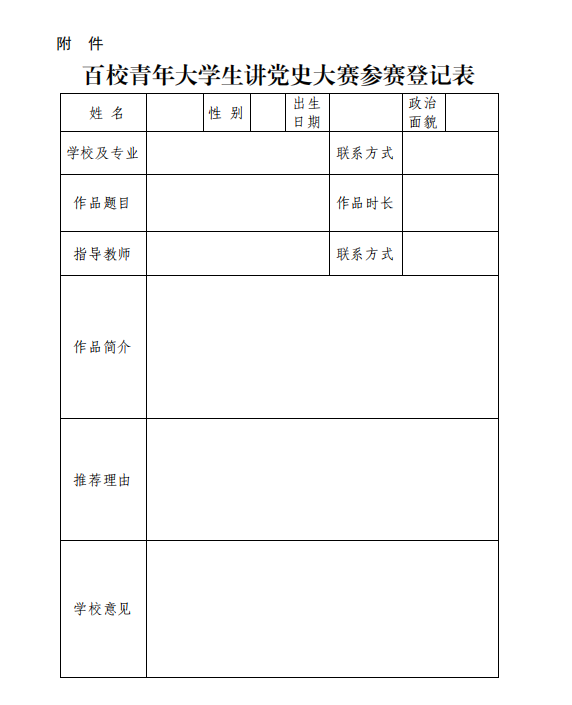 附件:百校青年大学生讲党史大赛参赛登记表