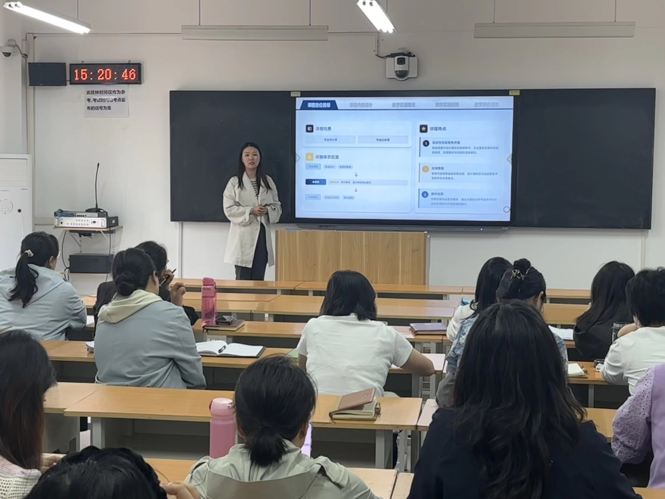 活动现场,各教研室高度重视、精心遴选,四个教研室分别推荐优秀教师依次上台展示。参赛教师紧扣课程标准与教学目标,围绕课程定位、教学设计、教学方法、学情分析、考核评价等核心内容展开说课,充分展现出扎实的教学功底、清晰的授课思路与创新的教学理念。展示过程中,教师们逻辑严谨、重点突出,将专业知识与教学技巧有机融合。张召哲对本次展示教师的表现给予充分肯定,并围绕说课规范、内容凝练、课堂落地等方面作出细致点评,为后续教学改进提出明确方向与具体要求。