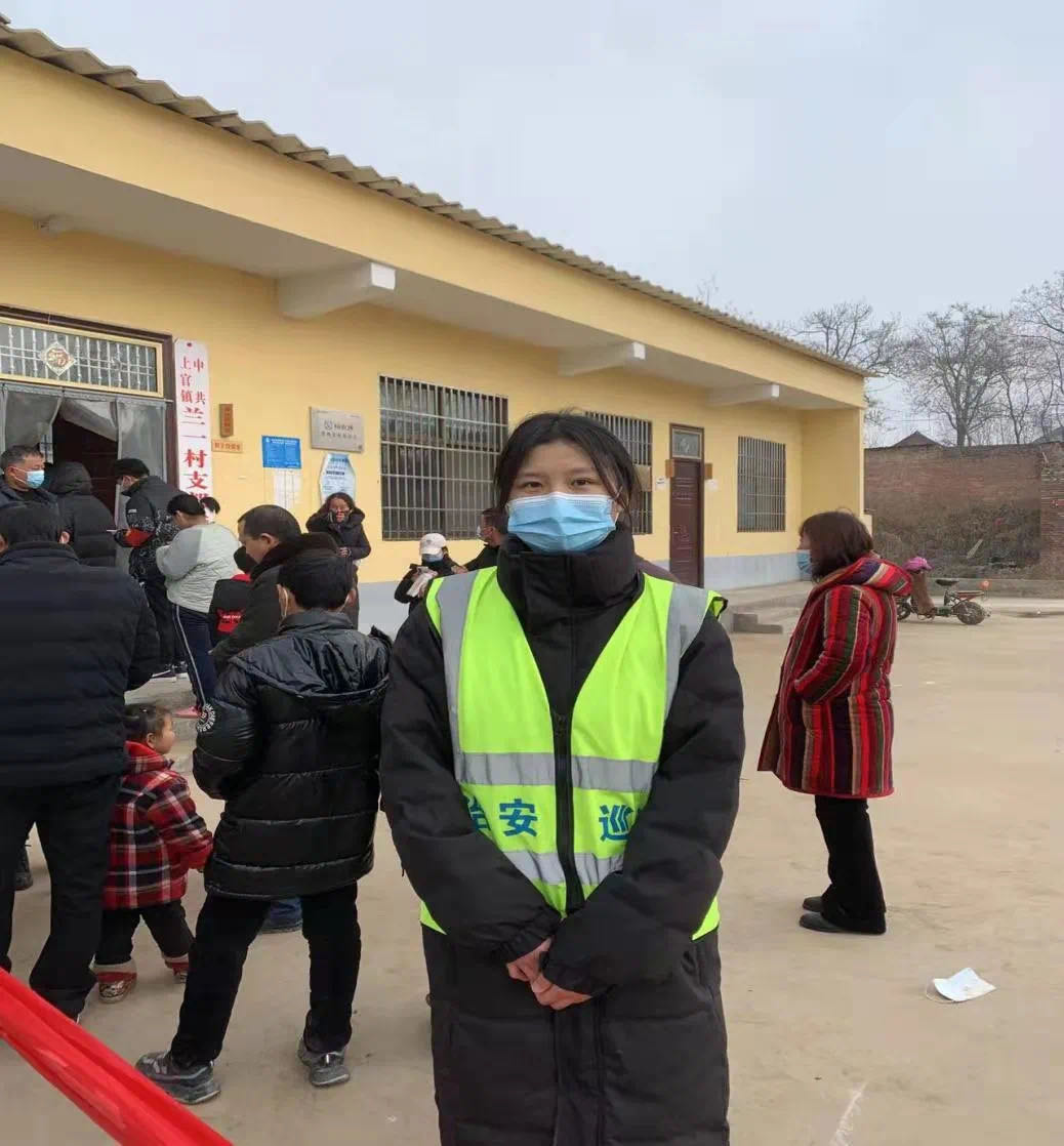 sunbet2021级金融服务与管理专业苏方婷,家住滑县上官镇兰一村。疫情爆发后,主动加入到家乡抗击疫情一线工作中,协助村委会组织核酸检测工作。在现场,她负责协助入户登记无法到场人员的情况、为村民答疑解惑提供疏导、积极维护检测秩序等工作。数天的持续坚守,尽一切努力保障人民群众的生命安全和身体健康。