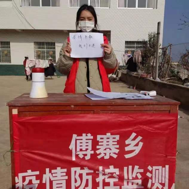 她的日常工作是值守疫情防控卡点,对来往人员进行测温消毒、登记出入信息,查验健康码,行程码。作为一名大学生,她认为:为人民服务是我的义务,也是我的荣幸。这是生我养我的家乡,为我的家乡做事,为人民做事,我不觉得累不觉得苦。