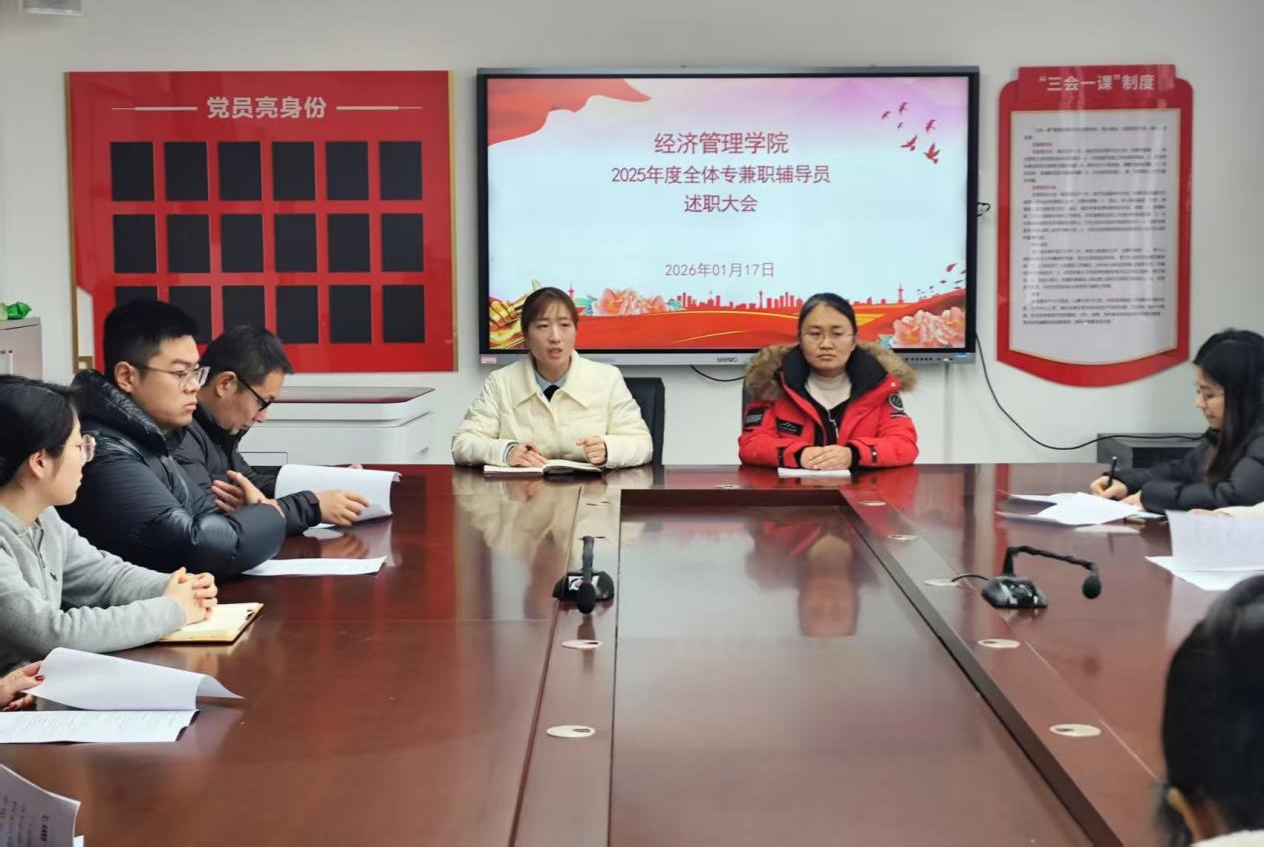 为全面总结学生管理工作成效,强化辅导员队伍建设,2026年1月17日,sunbet在郑州校区办公楼502召开2025年度辅导员工作述职会议。学院党总支书记王倩、副书记王盼红出席会议,全体专兼职辅导员参加,会议由王盼红主持。