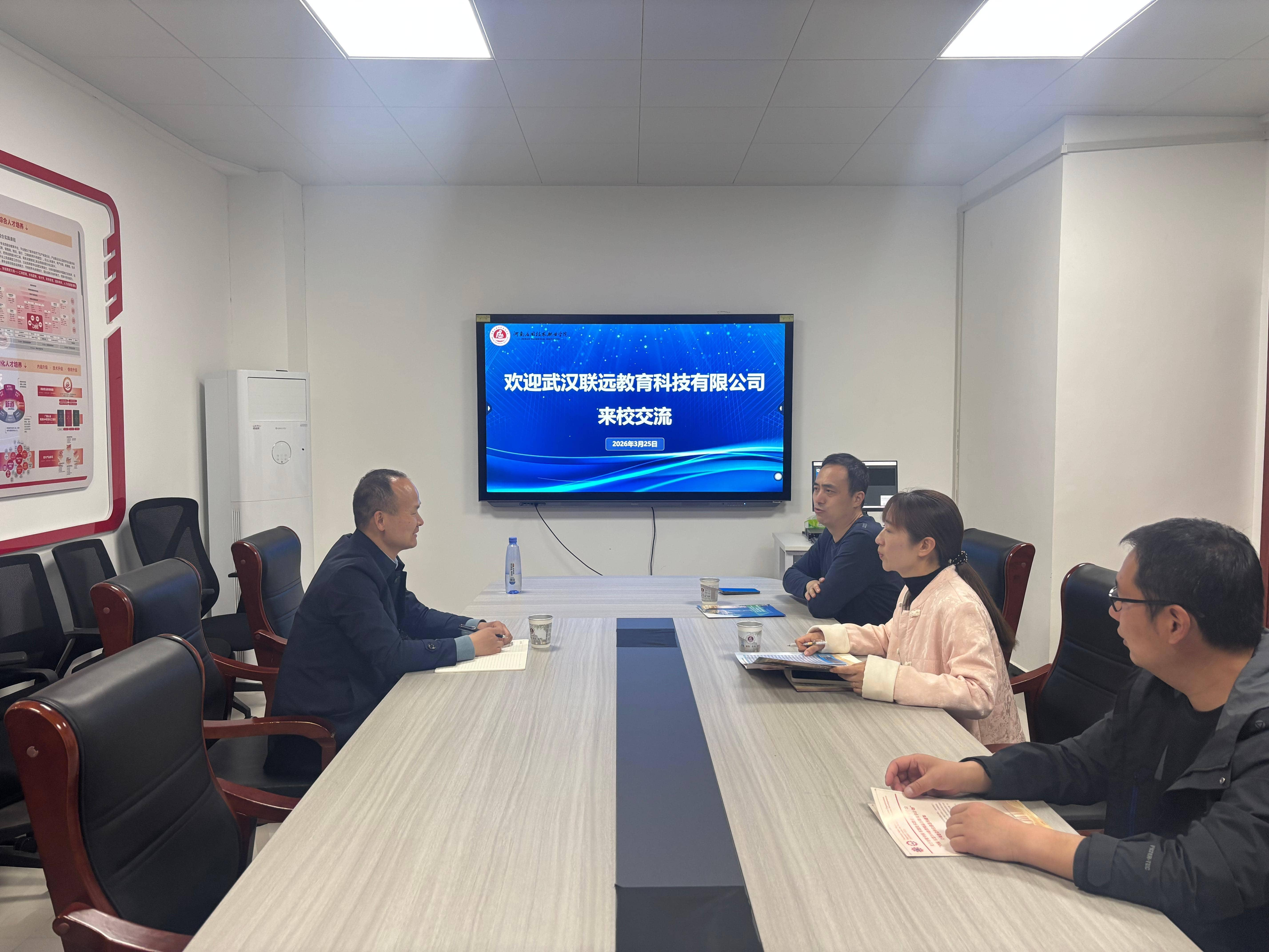 为进一步加强校企合作,推动产教深度融合,3月25日下午,武汉联远教育科技有限公司苏经理到访我校sunbet。学院党总支书记王倩、院长张召哲、学工办主任张昂及相关人员热情接待了来访嘉宾,并举行交流座谈会,双方围绕未来合作方向展开深入探讨。
