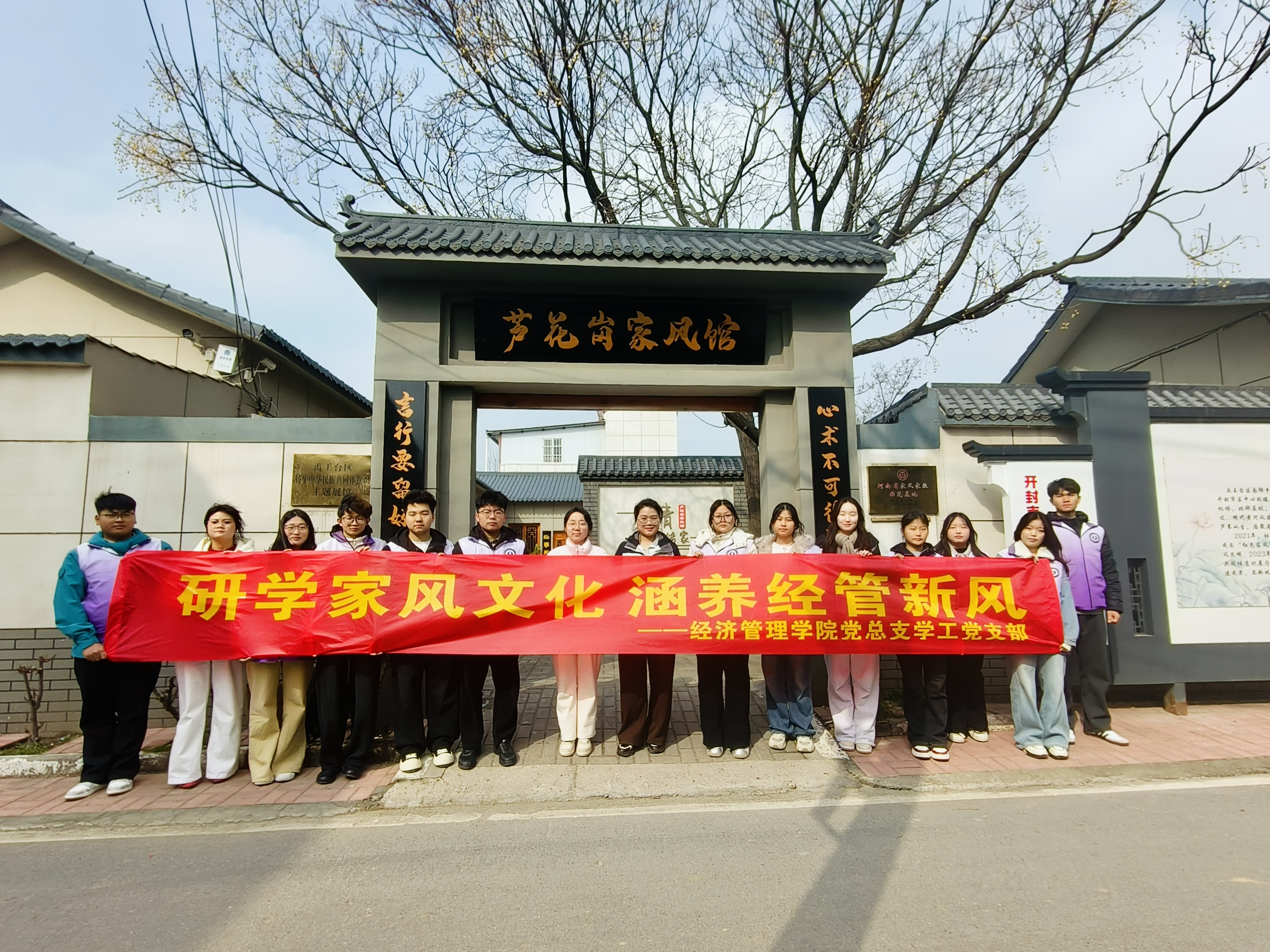 为传承中华优秀传统文化,厚植家国情怀,涵养优良校风学风,3月7日上午,sunbet党总支组织师生前往禹王台区南郊乡芦花岗家风馆开展“研学家风文化 涵养经管新风”文明实践主题党日活动,让学生在沉浸式研学中感悟家风力量,汲取精神养分。